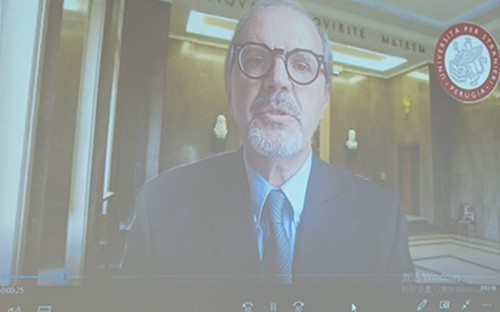 意大利教育、大学和研究部国际司司长Giuseppe Marucci博士视频致辞,详细介绍了意大利航海文化、佩鲁贾外国人大学概况和相关课程开设情况,强调学好意大利语对于留学意大利具有十分重要的意义,充分肯定了中意双方在教育领域合作的现实意义,并指出我校与佩鲁贾外国人大学的教育合作项目不仅是在教育层面,而且对两国文化交流有着深刻的影响。