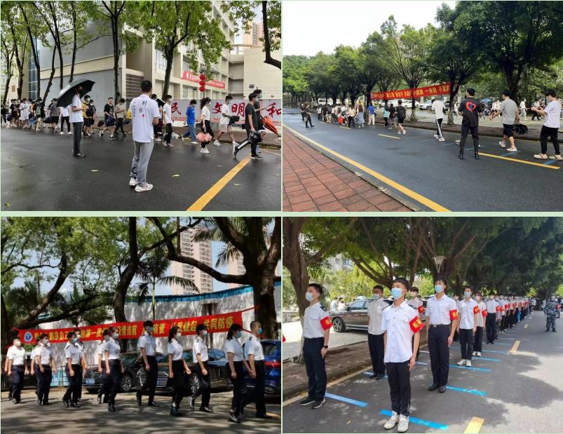(国旗护卫队、纠察队、各学院督导队自助助人,共同拧紧疫情防控全链条)