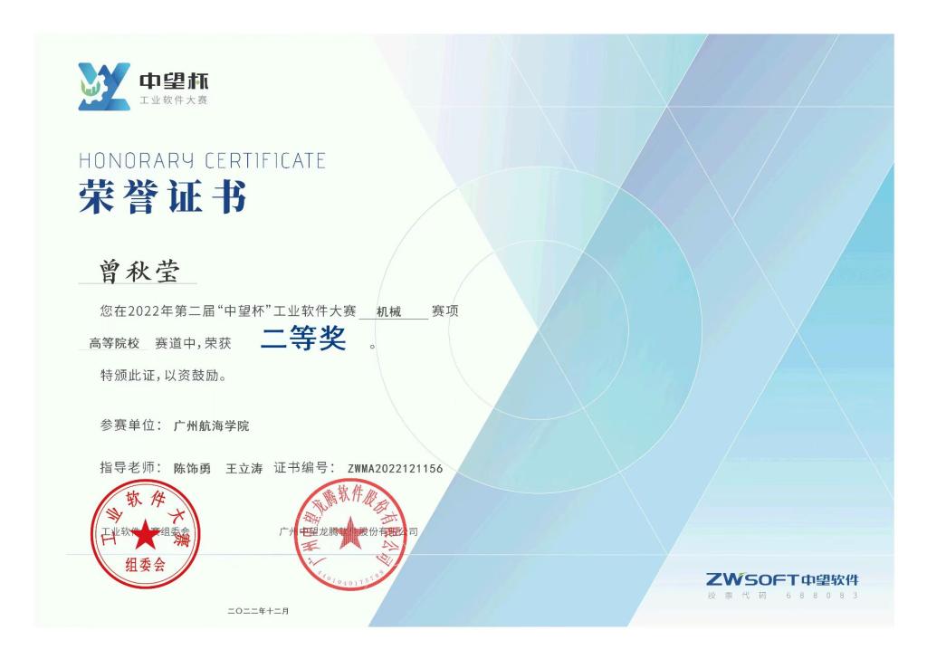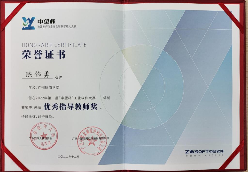 (学工部、船舶与海洋工程学院 供稿)近日,第二届“中望杯”工业软件全国大赛赛果揭晓。我校获得“优秀组织”奖,船舶与海洋工程学院学子钟柔静、曾秋莹分别获得全国总决赛机械组一等奖与二等奖,陈饰勇老师、刘洋老师获得“优秀指导老师”奖。