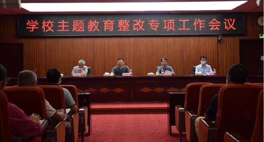 5月21日上午,根据学校党委工作部署,我校在行政楼A楼六楼召开主题教育整治整改专项工作会议,传达学习省委第十八巡回指导组关于问题检视和专项整治工作有关要求,通报总结前期学校整治整改工作推进情况,安排部署下一步主题教育及专项整治整改工作。校党委书记、校长、主题教育领导小组组长邹采荣主持会议,学校主题教育领导小组全体成员及主题教育办公室全体人员、各职能部门负责人及联络员、各二级单位党组织负责人及联络员参加会议。