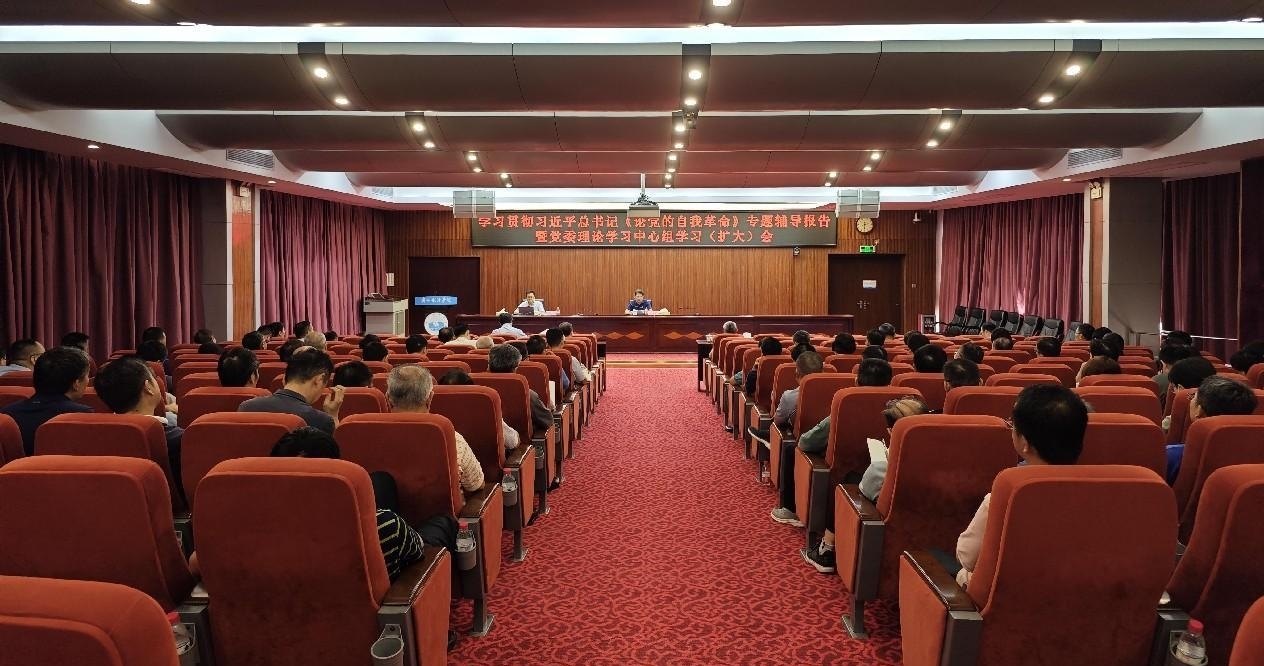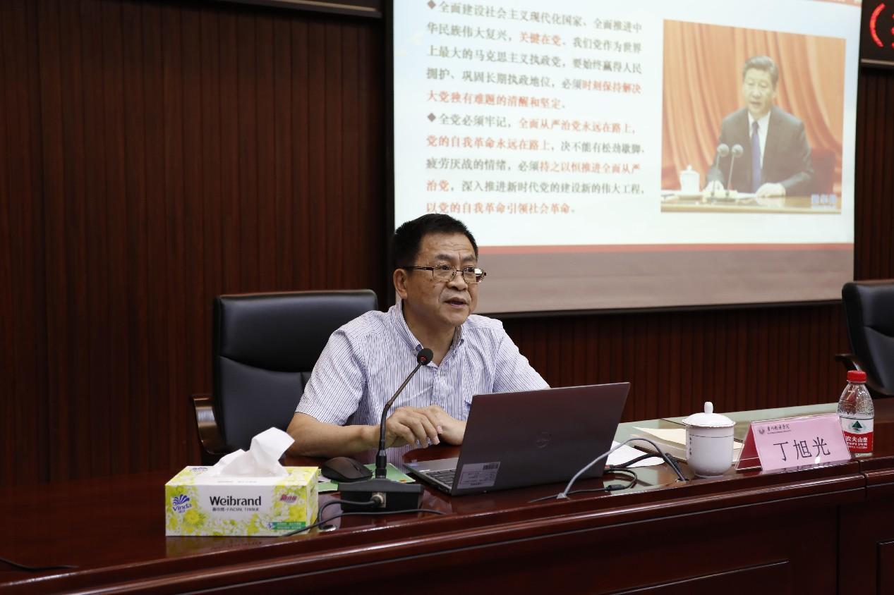 7月22日下午,学校在行政A楼六楼报告厅召开学习贯彻习近平总书记《论党的自我革命》专题辅导报告暨党委理论学习中心组学习(扩大)会,会议邀请原中共广州市委党校副校长、二级巡视员丁旭光教授作了题为《坚定不移全面从严治党 深入推进新时代党的建设新的伟大工程》的辅导报告。会议由戈飞平副校长主持,在校校领导、党委理论学习中心组成员、副处级以上中层干部100余人参加学习。