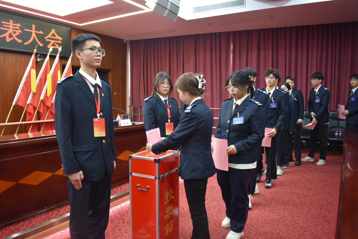 陈昌彩代表市学联讲话,希望我校学生会成员要坚持以习近平新时代中国特色社会主义思想武装头脑,坚定对马克思主义的信仰、对中国特色社会主义的信念,坚持从学生中来,到学生中去,不忘初心、砥砺前行,带领广大青年学生在甲子广航新的征程上担当作为,绽放青春风采。