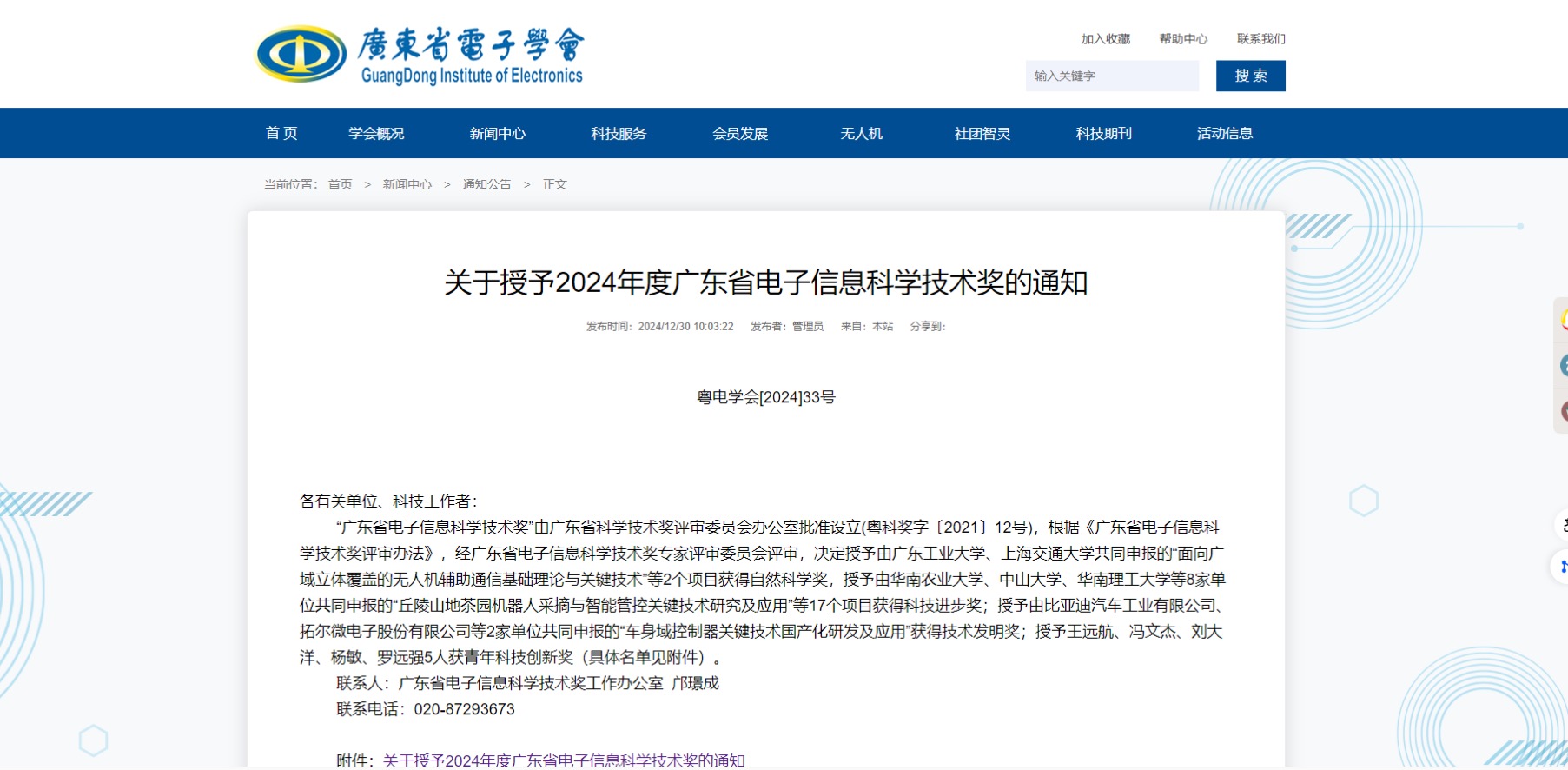 (广东省电子学会网站链接:关于授予2024年度广东省电子信息科学技术奖的通知https://www.gdcie.org.cn/News_View.aspx?classid=169&pclassId=168&kindId=6&id=20289 )