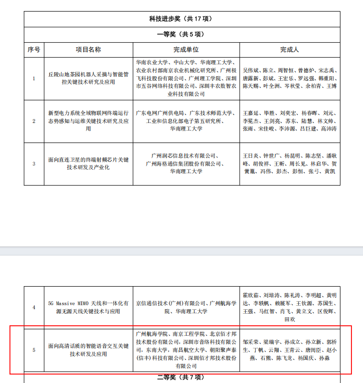 近日,2024 年度广东省电子信息科学技术奖获奖名单揭晓。由beat365中文官方网站作为第一完成单位,与南京工程学院、北京佰才邦技术股份有限公司等共八家单位联合申报的“面向高清话质的智能语音交互关键技术研发及应用”项目荣获广东省电子学会科技进步奖一等奖。该项目由我校计算机学院邹采荣教授担任总负责人,孙成立教授作为第三完成人与孙淼博士共同参与完成。该项目的成功申报和获奖,标志着我校在声学信息人机交互领域的科研成果得到了业界的高度认可。