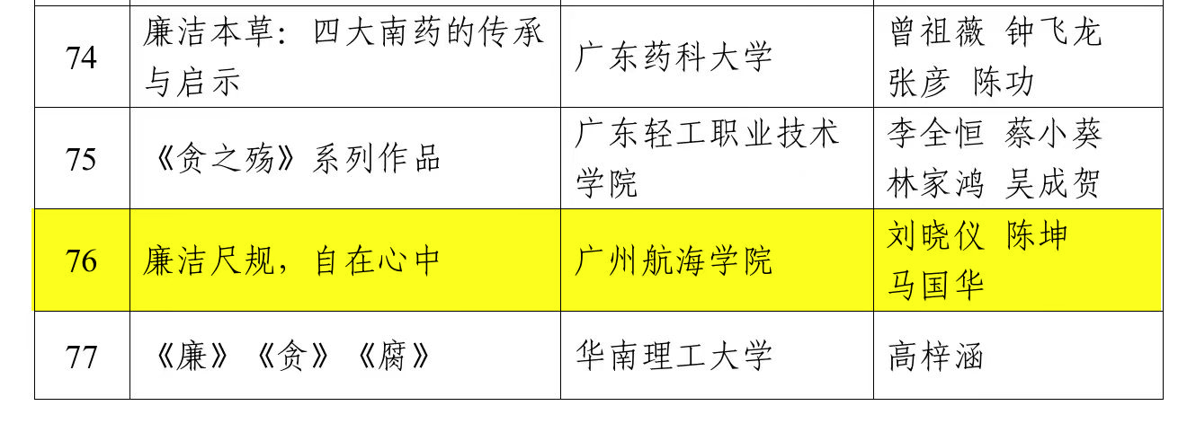 活动开展以来,我校高度重视,积极响应,学校党委宣传部在全校范围进行了组织动员、审核评选,刘晓仪同学的《廉洁尺规,自在心中》创意作品在数字媒体与交互设计学院领导老师的大力支持下,先后从校赛、省赛中脱颖而出,由广东省教育厅推荐参加全国赛,最终与华南理工大学、广州大学等6件广东赛区作品共同入选“画廉正心”创意征集全国100强名单,斩获我校在此项活动中的首个教育部奖项!