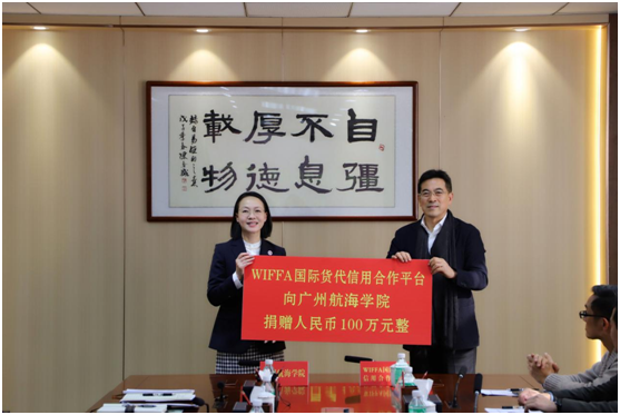 康树春表示,时光见证了甲子广航的奋进,在陶韶菁书记的带领下,学校上下凝心聚力谋发展、闯关夺隘抓建设,提出了全新理念、克服了种种困难、办成了许多大事。WIFFA作为国内知名的航运物流门户平台,在推动行业发展、提升服务质量、开展公益项目等方面付出了执着的努力,取得了丰硕的成果。此次教育发展金的捐赠意在通过资源共享、课程共建、实习实训等形式进一步深化合作交流,推进文化出海、人才出海,为“一带一路”倡议凝聚校企合力,做出积极贡献。
