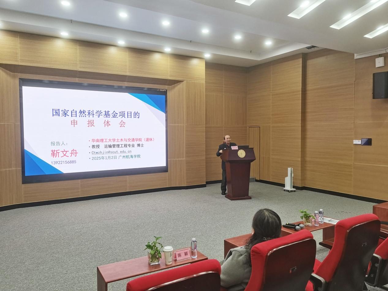 1月2日下午,华南理工大学靳文舟教授、广东工业大学陈颖教授受邀在B10图书馆胜海厅分享了国基申报体会。会议由科学研究部路金林部长主持。