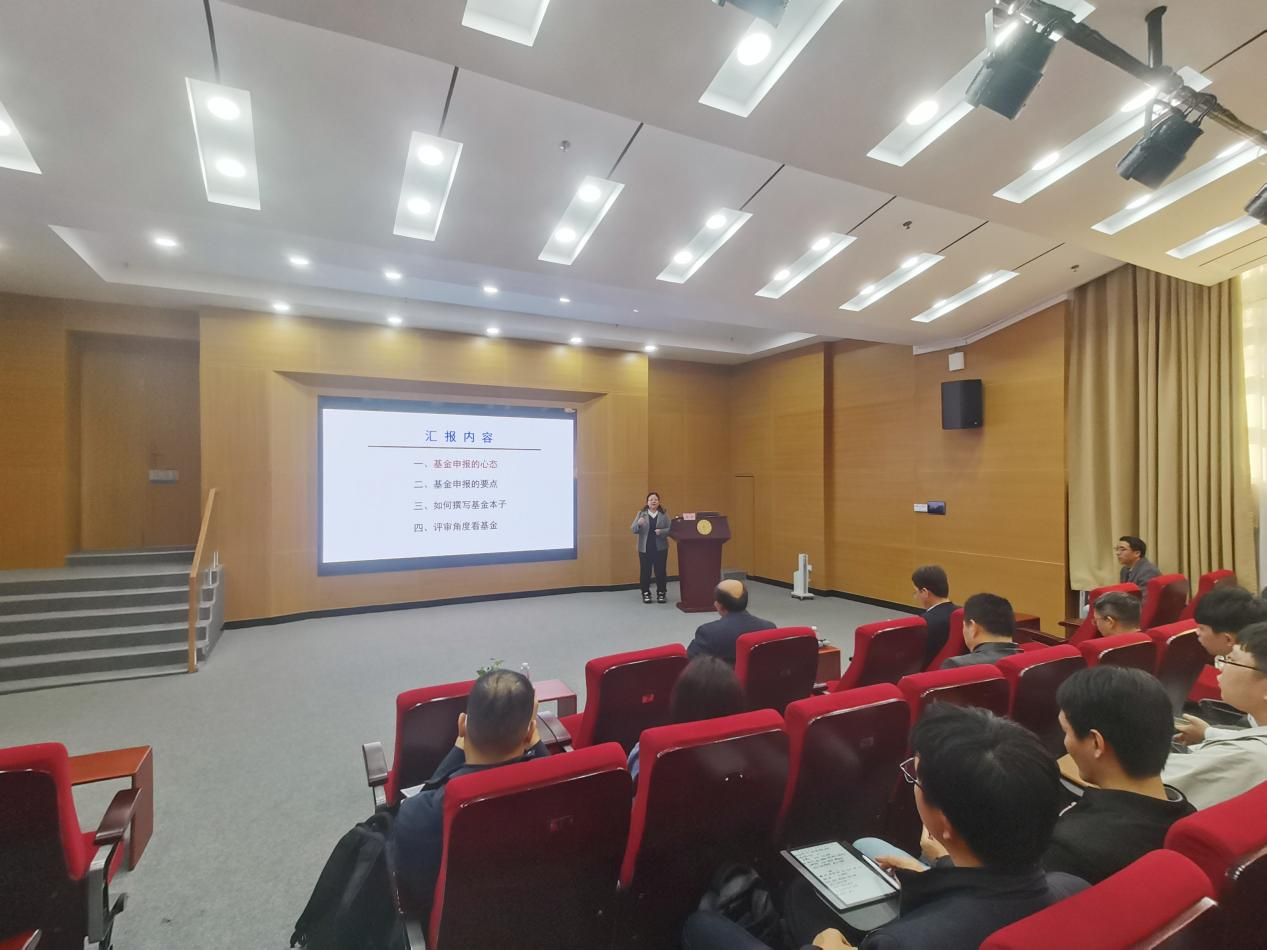 陈颖教授做了题为“立足基础,十年磨剑——国家基金项目申报交流”的报告。她从本人申报基金的历程、团队近10年基金获批情况进行了分享,强调要以使命型和兴趣型为导向,以选题、创新性、科学问题为要点,要充分理解题目、摘要、立项依据、正文内容之间的逻辑关系,重视申请书的写作顺序,并以青年教师的梦想、成长之源、成长之路引出基金申请对于教师成长的重要性,希望基金能助力伴随青年教师成长、一路同行。