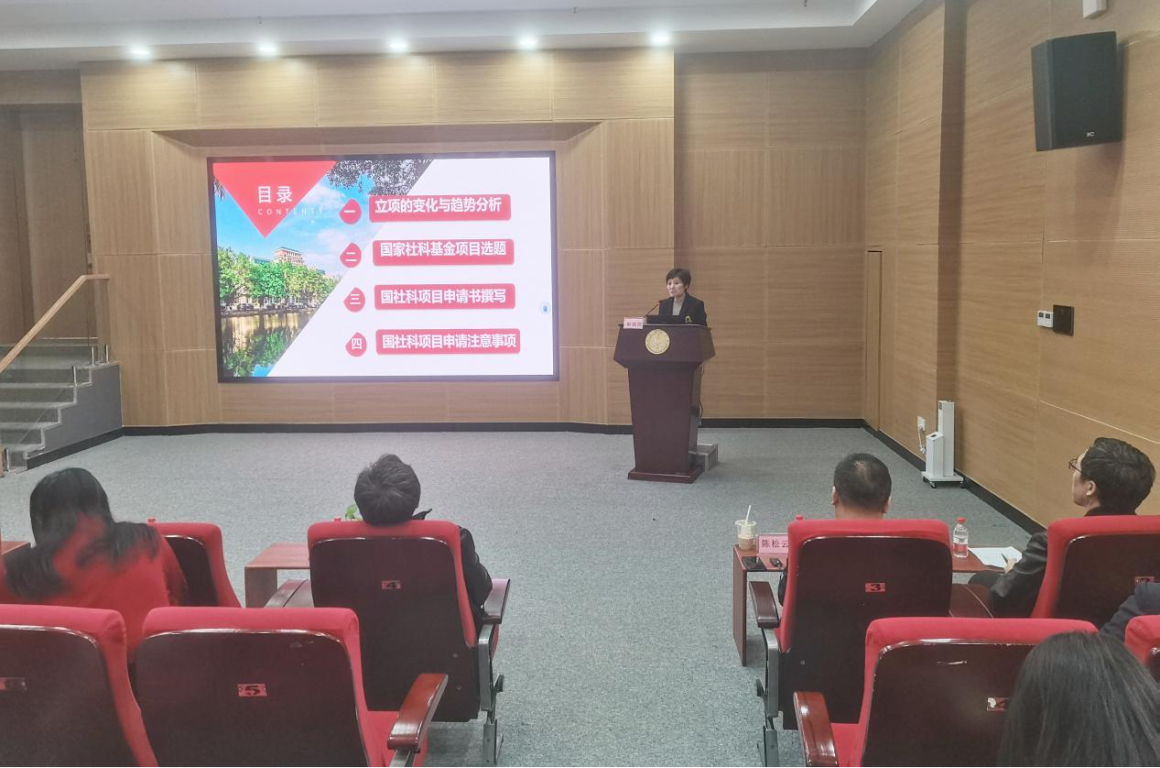 2025年1月15日下午,应我校科研部邀请,华南理工大学图书馆馆长、教育部思创中心副主任解丽霞教授及学校国际交流学院副院长陈松云副教授受邀在B10图书馆胜海厅分享了国家社科基金项目(以下简称“国社科”)申报经验体会。会议由科学研究部路金林部长主持。