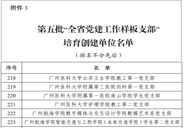 近日,广东省委教育工委公布全省第五批新时代高校党建示范创建和质量创优培育创建名单,学校推荐的3个项目100%入选:计算机学院党委入选“标杆院系”培育创建单位,数字媒体与交互设计学院数媒艺术系党支部、智能交通与工程学院学生第二党支部入选“样板支部”培育创建单位,学校党建“双创”工作再创佳绩!