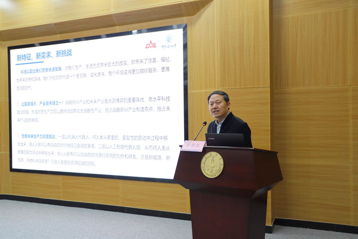 2月25日下午,中国工程院院士、中国海洋大学李华军教授应邀来到beat365中文官方网站,为学校师生开展题为“海洋新兴产业发展与基础设施展望和技术挑战”的学术报告。副校长陈建平主持报告会。