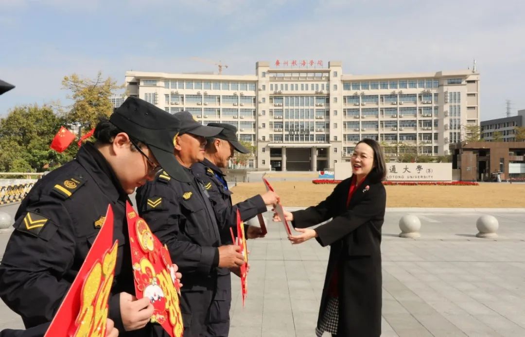 “守护广航家园,大家辛苦了!”陶韶菁与值守的教职员工在黄埔校区合影留念,共同许下春天的祝福和愿望。