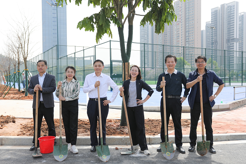 “植”此青绿,共“树”未来。陶韶菁指出,学校积极响应党中央“植树造林”号召,2024年开始推进绿美广航,时隔一年,手植的百株树苗已形成了广航的一片花海,一万平方米绿地连接了海燕广场南北区。本次爱心植树活动是绿美广航的继续进行时,具有三重意义。第一重是心怀感恩。“万卷藏书宜子弟,十年种木长风烟。”在各方的鼎力支持下,学校坚持植树造林、着力美化校园环境、不断增厚“绿色家底”。莘莘广航学子漫步校园即可欣赏到风铃木的绿树成荫,为学校以美育人、以文化人留下浓墨重彩的一笔。第二重是寄予希望。合抱之木,生于毫末。桃李不言,下自成蹊。增绿就是增优势,植树就是植未来。今天,我们在这里挥锹铲土、培土围堰、提水浇灌,种下的既是绿色树木,也是广大校友、企业朋友以及属地街道的深厚情谊,更是广航春光为序、向好向强的美好未来。第三重是携手发展。时光无言,奋斗有痕。六十年来,十余万名广航学子振奋龙马精神、历经风雨彩虹,耕海牧洋、通江筑港,为母校争得“航海家的摇篮”的赞誉。今天,我们在新校道的用地上种植无忧树,寄语祝福“大干十二年,再造新广航”的前路更广、特色更明、底色更重、成色更足。