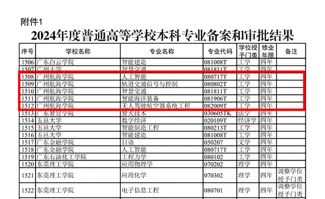 近日,教育部公布了2024年度普通高等学校本科专业备案和审批结果,学校申报的人工智能、轨道交通信号与控制、智慧交通、智能海洋装备、无人驾驶航空器系统工程5个本科专业全部获批!这是学校主动对接产业需求、服务国家战略的重要举措,更是学校专业建设水平的有力体现。如今,学校本科专业已达40个。