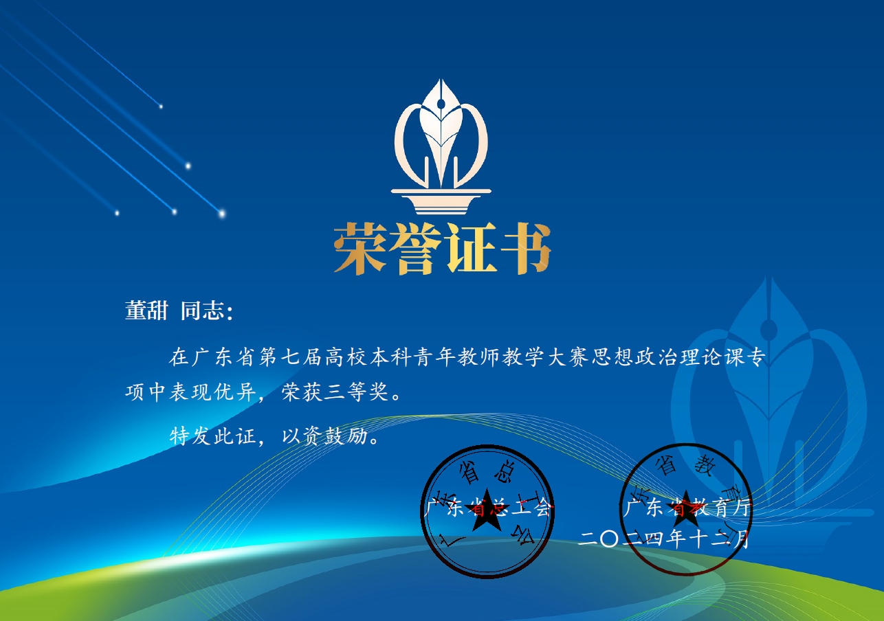 全国高校青年教师教学竞赛是中华全国总工会、教育部联合主办,以青年教师为主体,以锤炼教师教学基本功为着力点的比赛。竞赛内容包括整门课程的教学设计、课堂教学与教学反思等相关内容,比赛分校赛-省赛-国赛三个阶段。广东省第七届高校(本科)青年教师教学大赛由广东省总工会、广东省教育厅主办,设文科组、理科组、工科组三个组别,并细分为八个比赛组,全省65所本科高校通过校内选拔,共推荐822名优秀青年教师参加本次青教赛。