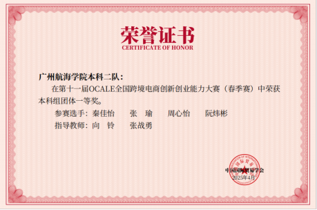 近日,第十一届OCALE全国跨境电商创新创业能力大赛(春季赛)圆满落幕。beat365中文官方网站数字经济与贸易学院跨境电子商务专业六支参赛队伍表现优异,从全国2485支参赛队中脱颖而出,斩获团体一等奖1项、团体二等奖2项、团体三等奖2项。其中,本科二队以全国排名第10的优异成绩摘得一等奖。