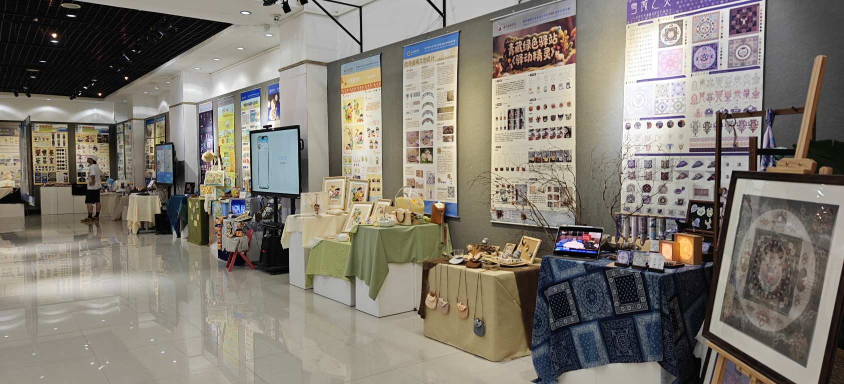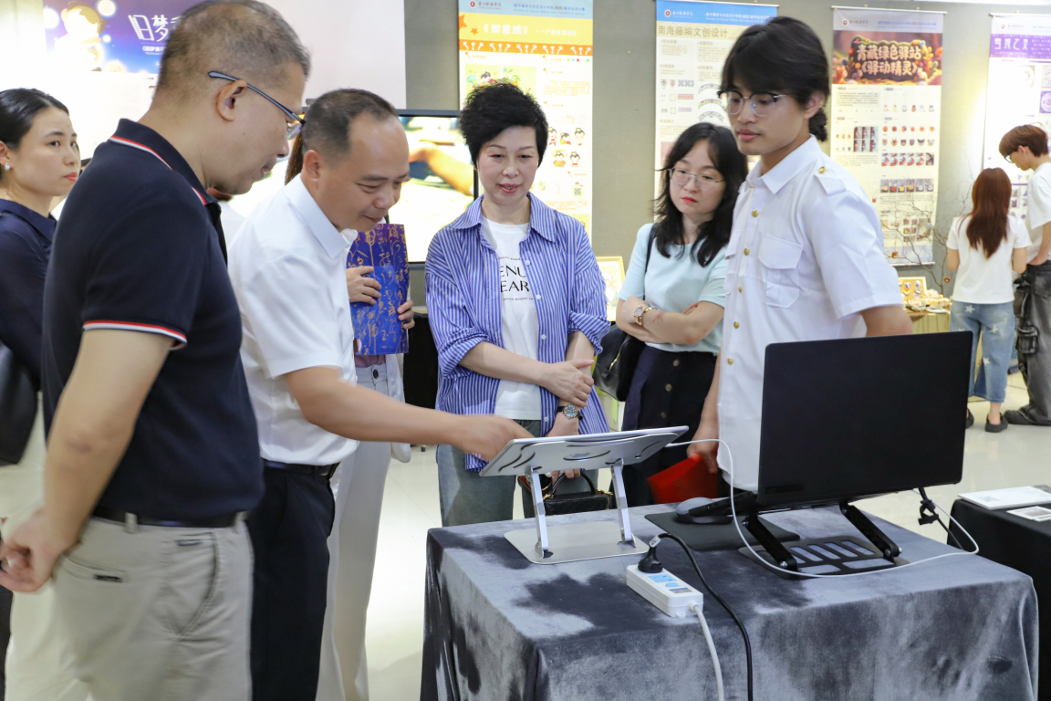 开幕式后,与会领导、嘉宾共同参观了展览。本次毕业设计展汇聚了设计学院200名毕业生的创意作品,展览作品涵盖前沿的数字交互、精美的非遗文创,到专业的品牌包装、独具匠心的空间设计与生动的IP形象,更有许多巧妙融合VR、AR、AI技术的探索性实践,题材丰富,创意无限,为观众呈现了一场视觉盛宴,集中展示了学院近年来围绕AIGC、数字交互、文化遗产、社区更新等领域,结合区域特色文化进行创造性转化的创新实践成效,展现了学院依托地方优势产业、特色文化资源以及学校工科优势专业开展的交叉学科教学实践成果。