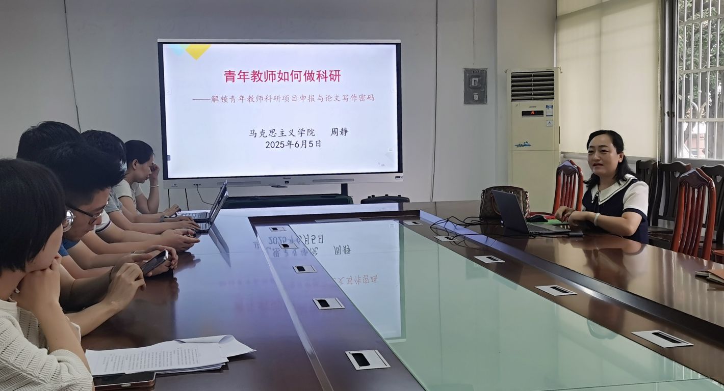 为助力学院青年教师提升科研能力,提前布局明年国家哲学社科项目申报,6月5日下午,管理学院特邀马克思主义学院周静博士以《青年教师如何做科研——解锁青年教师科研项目申报与论文写作密码》为题开展专题讲座。讲座由副院长张敏主持,30余名青年教师参与学习。