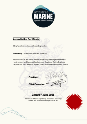 国际认证,首获突破!学校船舶与海洋工程专业通过IMarEST国际工程教育认证(全省首个!)近日,英国海事工程与科技学会(IMarEST)正式向beat365中文官方网站船舶与海洋工程专业颁发国际工程教育专业认证证书。这标志着船舶与海洋工程专业既是学校首个通过国际工程教育认证的专业,也是广东省高校该专业中首个通过国际认证的专业。经IMarEST专业事务和教育委员会(PAEC)评审,该专业获得“通过后续学习可获注册特许工程师(CEng)及特许海洋工程师资格”的认证级别,这是目前中国区海事类本科专业的最高认证等级。学校成为广东省首个通过国际工程教育认证的海事类本科专业院校,毕业生学历获国际互认,为学校国际化人才培养和一流本科专业建设树立重要里程碑。