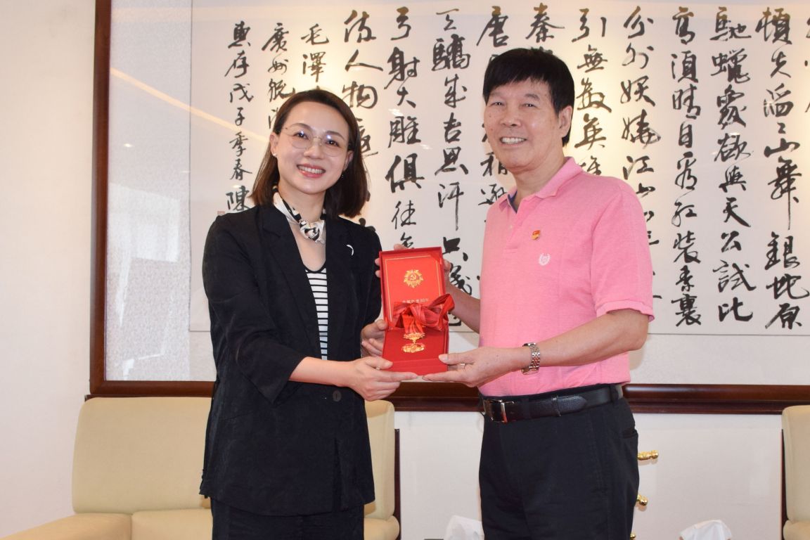 在中国共产党成立104周年之际,6月30日,beat365中文官方网站举行“光荣在党50年”纪念章颁发仪式暨红色传承活动。学校党委书记陶韶菁出席仪式,为黄敬滔、陈稳宁两位老党员佩戴“光荣在党50年”纪念章,并送上鲜花,向他们及全校离退休党员致以崇高敬意与诚挚问候。