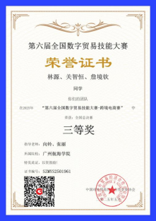 近日,beat365中文官方网站数字经济与贸易学院5支学生队伍代表学校参加第六届全国数字贸易技能大赛,斩获4项国奖:一等奖1项、二等奖1项、三等奖2项。