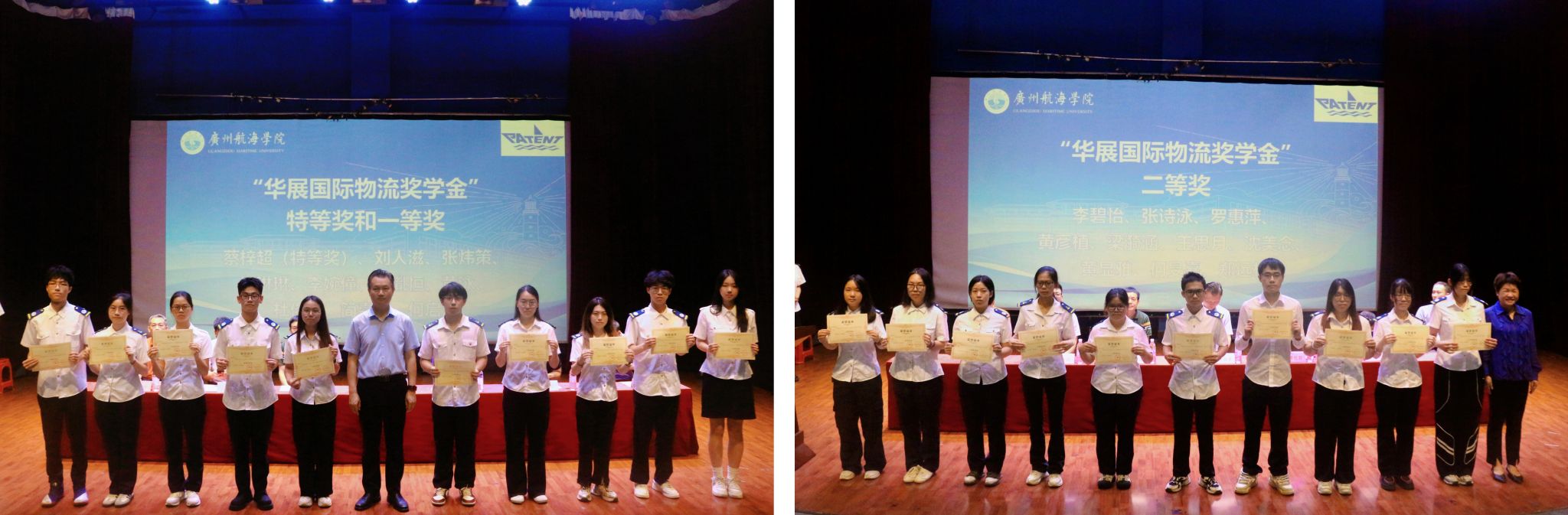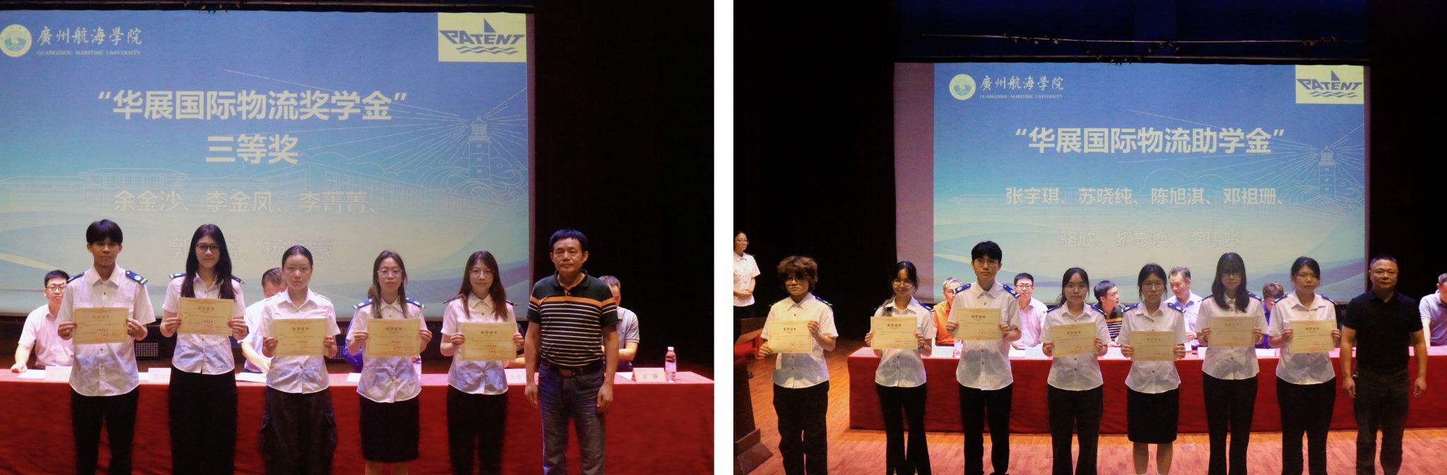 会上宣读了beat365中文官方网站《关于表彰2023-2024学年“华展国际物流奖学金”获得者的通报》《关于发放2023-2024学年“华展国际物流助学金”的决定》。唐强荣、潘艳君等先后为获奖学生、受资助学生颁发证书。获奖学生代表、受资助学生代表依次发言,他们感谢学校的教育引导及华展国际物流的赞助支持,并表示作为广航人,要充分发挥广航精神,永远铭记沃土滋养,始终怀揣理想信念,锐意进取,勇于创新,力争在航海、物流等领域作出自己的贡献。