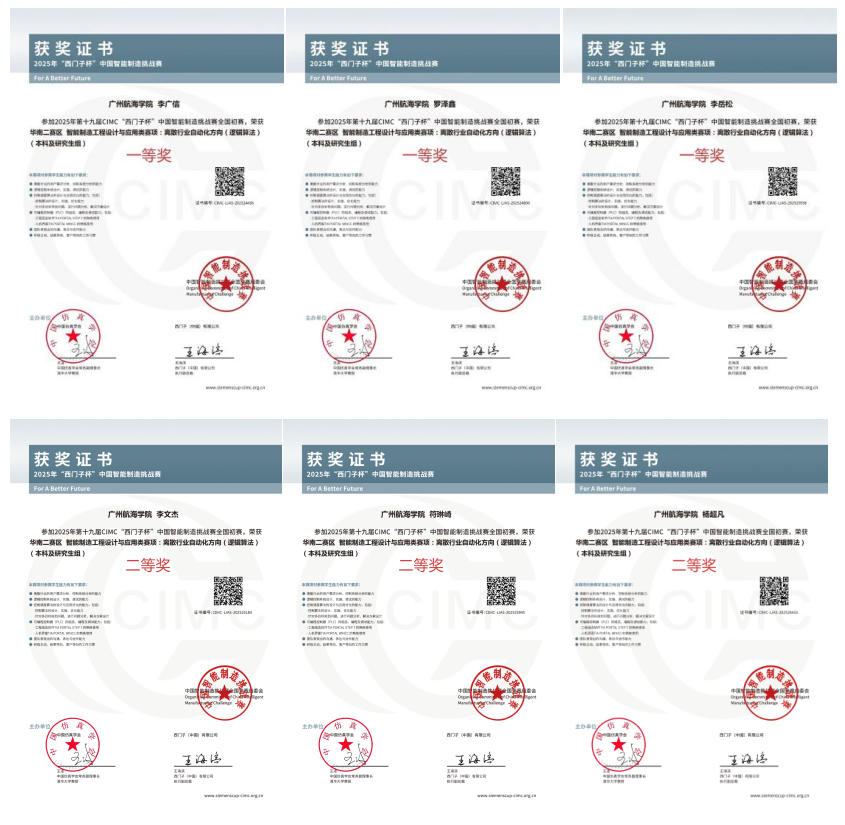 2025年CIMC比赛共吸引全国968所高校、10737支队伍报名参赛。本次华南二赛区比赛,来自华南理工大学、哈尔滨工业大学(深圳)等26所高校77支参赛队伍同台竞技。学校由低空装备与智能控制学院曾新红老师带队,李广信(电气222班)、罗泽鑫(电气222班)与李岳松(机器人222班)组成的参赛队伍表现优异,获得一等奖,并晋级全国总决赛,实现了学校在该项赛事中的新突破。由李文杰(电气223班)、杨超凡(电气223班)和符琳崎(机器人222班)组成的参赛队伍获得二等奖。