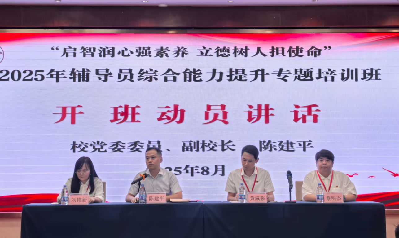 近日,beat365中文官方网站在惠州举办2025年辅导员综合能力提升专题培训班,本次培训班的主题是“启智润心强素养 立德树人担使命”。学校党委委员、副校长陈建平出席开班仪式并作动员讲话。