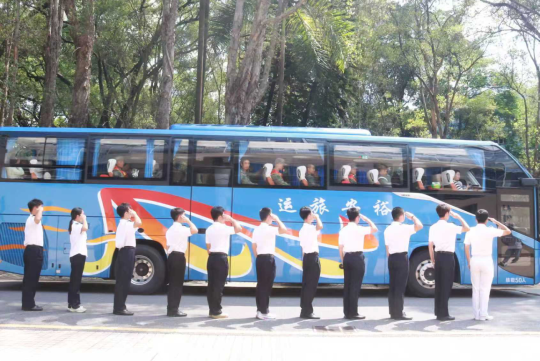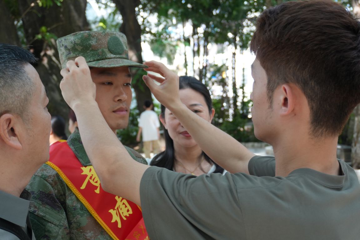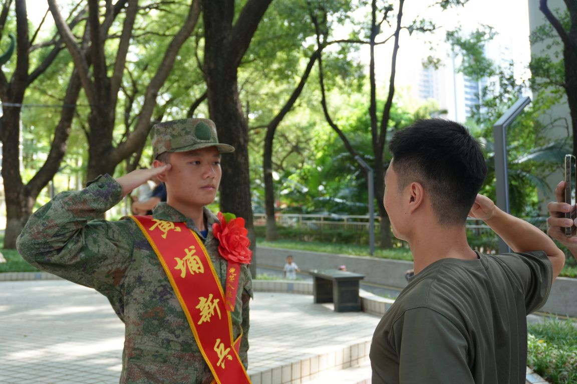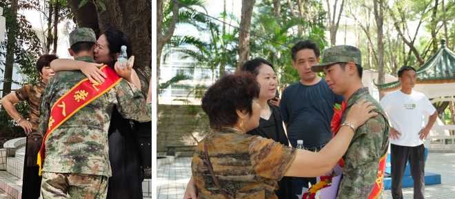 座谈会结束后,送别场面格外动人。望着即将奔赴军营的孩子,家人忍不住落下不舍的泪水,轻轻拥抱鼓励;亦有兄弟相约前来送行,两人相对而立,互敬军礼,无声中传递着深厚的手足情谊与家国担当。更令人动容的是,广航学子们整齐列队,与退役老兵一同肃立,向载着新兵的大巴车庄严敬礼。他们目光坚定,以最真挚的敬意为同窗壮行,目送车辆缓缓驶向远方。