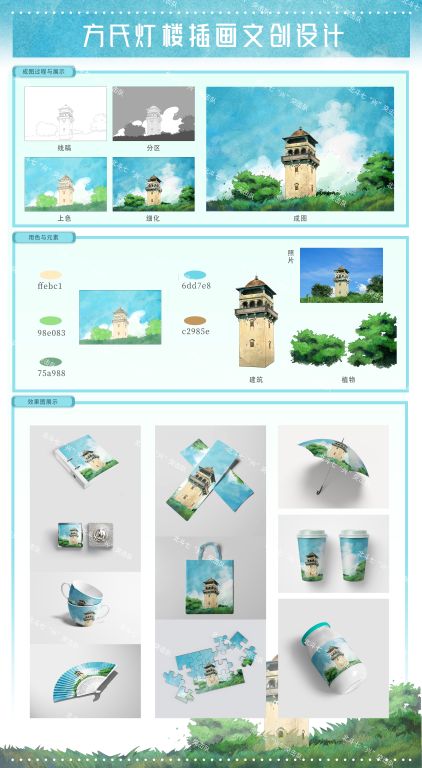 三等奖作品《“方氏灯楼”与“铭石楼”IP形象设计及文创衍生品》