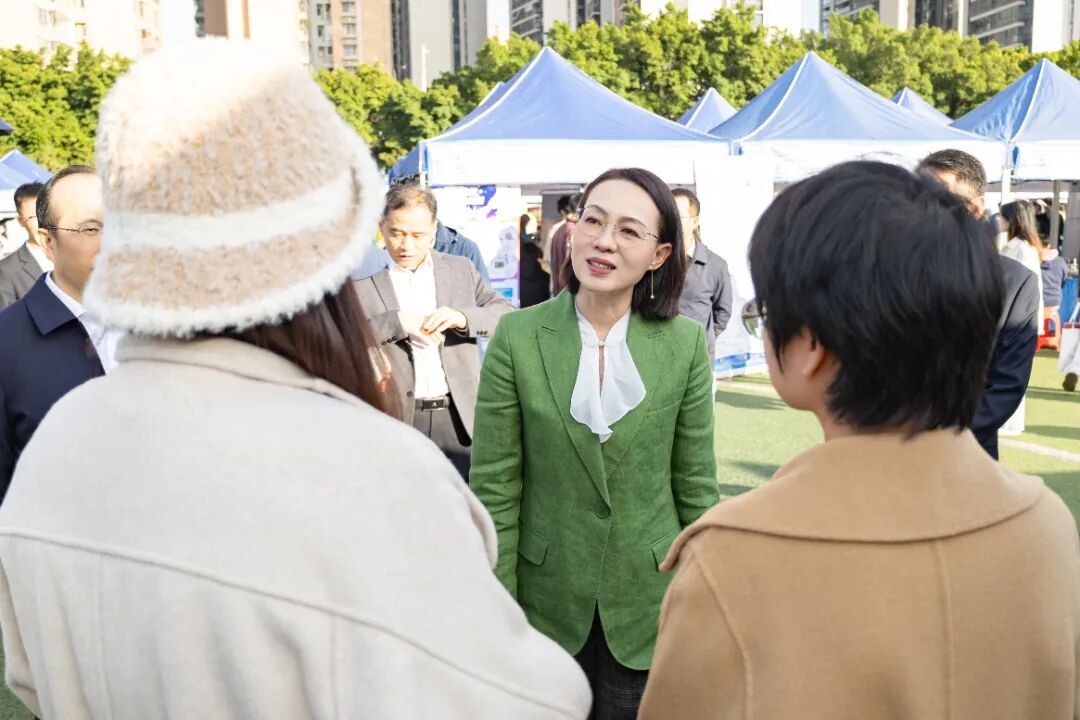 为进一步搭建高效精准的校企对接平台,推动2026届毕业生高质量充分就业,11月20日,beat365中文官方网站在黄埔校区南区田径场举办“百万英才汇南粤”暨2025年广州市“阳光就业”校园综合类专场招聘会。学校党委书记陶韶菁亲临招聘会现场,与广州市和黄埔区劳动就业服务部门领导、用人单位及参会学生亲切交流。