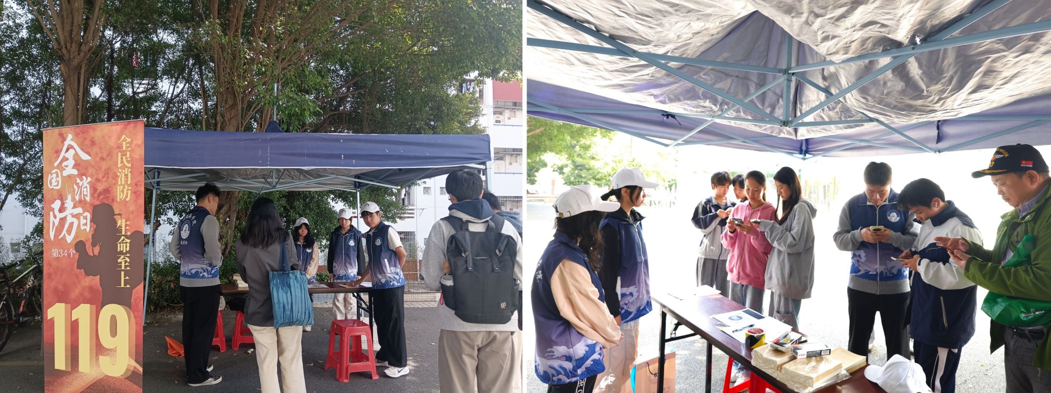 今年11月9日是第34个全国消防日。11月28日,学校保卫工作部与校团委在黄埔校区南北区食堂门口成功举办消防安全知识有奖问答活动。学校党委书记陶韶菁莅临活动现场指导工作,参与互动交流,对活动的开展给予肯定。