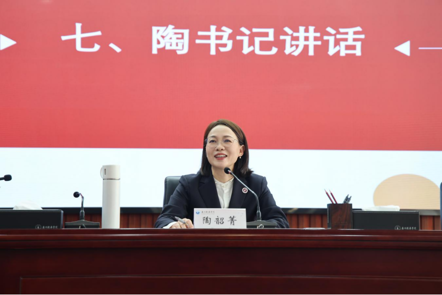 陶韶菁最后号召全校上下以更加饱满的热情和务实的作风,锐意进取,奋力开创学校招生就业工作新局面,为培养更多担当民族复兴大任的时代新人,服务国家和区域经济社会发展作出新的更大贡献。