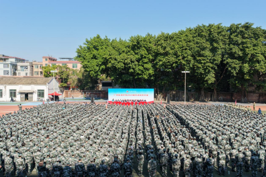 陶韶菁发表了题为《向潮头立,唯勇者胜》的动员讲话。她首先代表学校,向承担本次军训任务的黄埔区人民武装部及全体教官致以崇高敬意和衷心感谢。