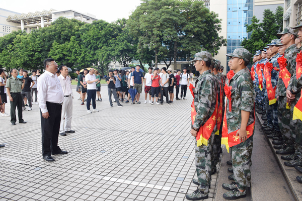 (学工部武装部供稿)9月6日下午,在教学楼电子欢迎大屏幕前,邹采荣校长与46名身披绶带、胸戴大红花的我校2019年即将入伍的大学生亲切交谈,他以自己人生不同阶段与部队的情缘跟同学们娓娓道来,激励同学们志存高远、报效祖国,去部队这个大熔炉里好好锻造,干出成绩,为母校争光。随后,邹校长与同学们一起合影留念。一起参加欢送仪式的还有校党委副书记招乐辉及学工部武装部负责同志。