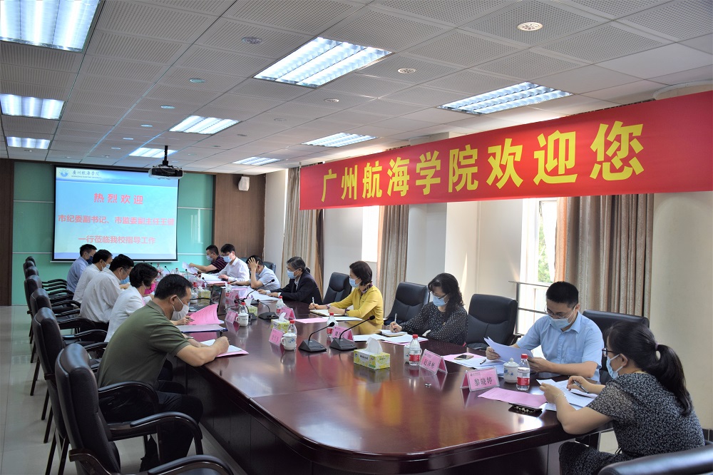 (纪委办公室供稿)4月28日下午,广州市纪委副书记、市监委副主任王健同志率市纪委监委办公厅、组织部、第五纪检监察室以及驻市教育局纪检监察组等部门的负责同志一行8人,莅临我校调研指导工作,学校党委书记、校长邹采荣,党委副书记、纪委书记招乐辉,以及学校党政办公室、组织部、纪委办公室负责同志热情迎接并参加调研座谈会。这是自2019年11月广东省政府批准我校成建制划转广州市政府管理后,市纪委监委领导首次莅临我校指导工作。