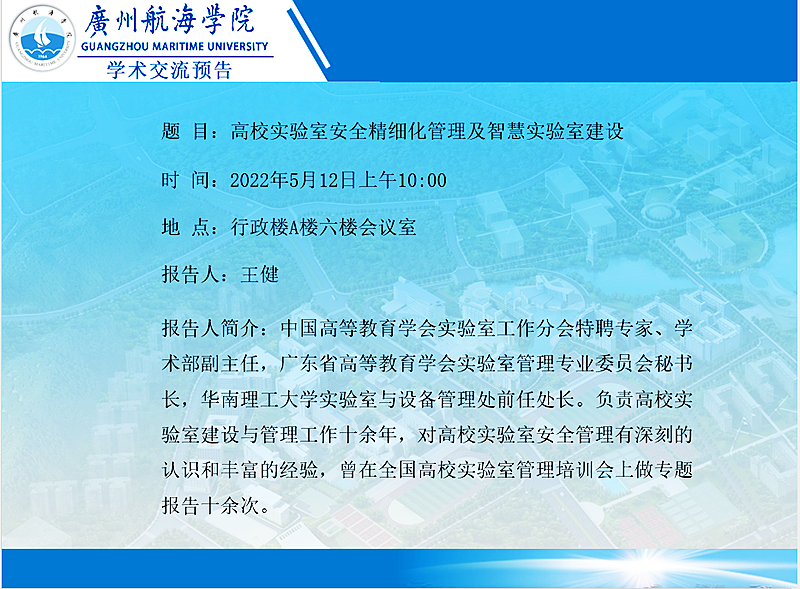 “高校实验室安全精细化管理及智慧实验室建设”学术讲座预告