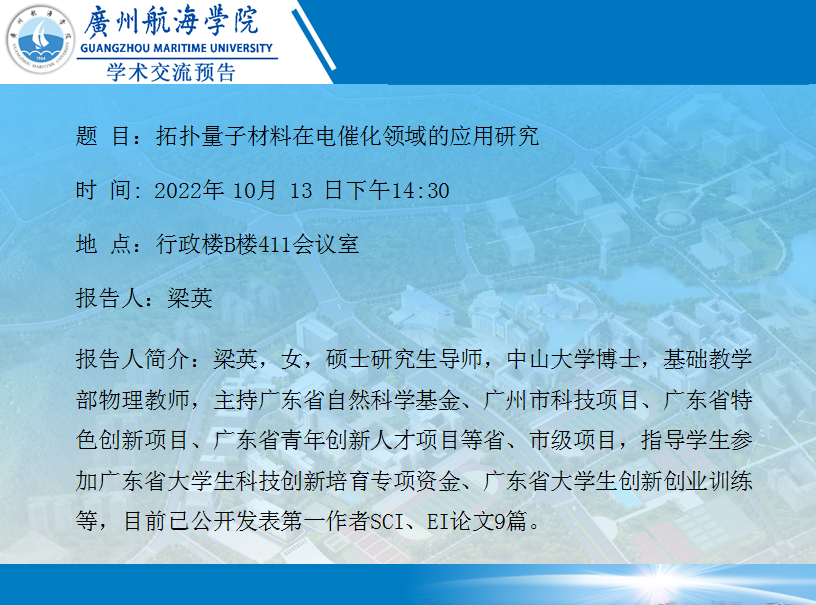 梁英博士学术讲座:拓扑量子材料在电催化领域的应用研究