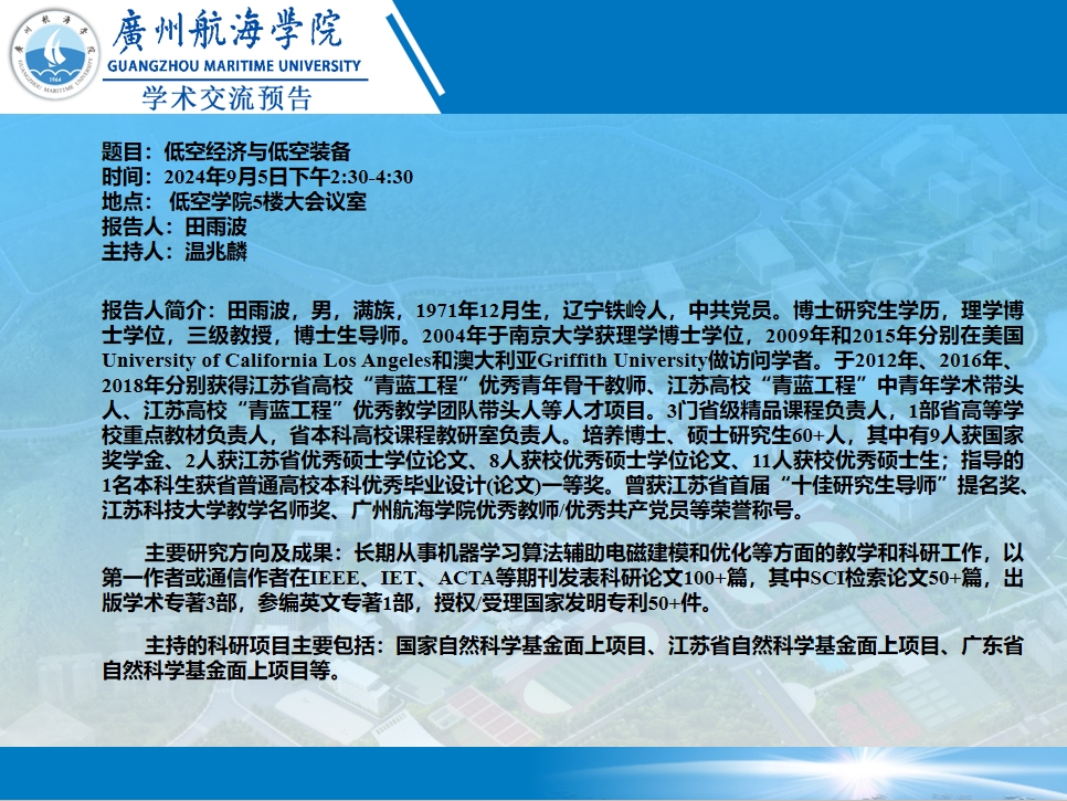 学术交流预告:田雨波教授《低空经济与低空装备》