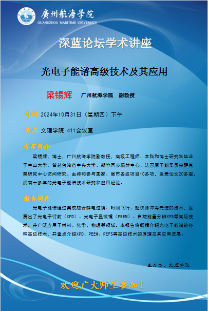 深蓝论坛学术讲座预告:梁锡辉《光电子能谱高级技术及其应用》