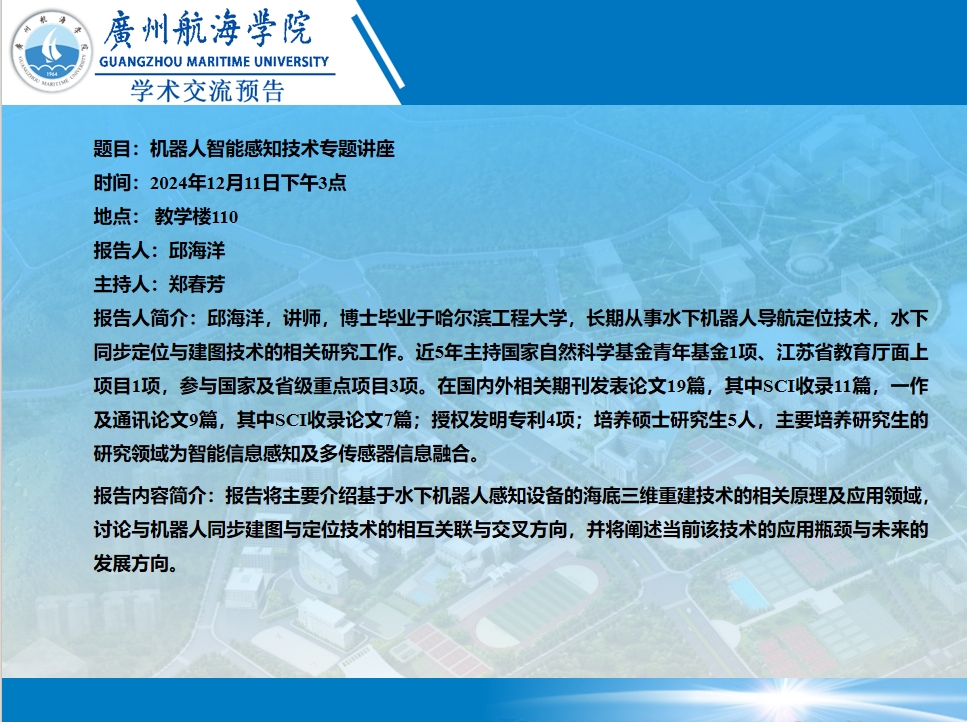 “低空翱翔”系列学术预告:邱海洋《机器人智能感知技术专题讲座》