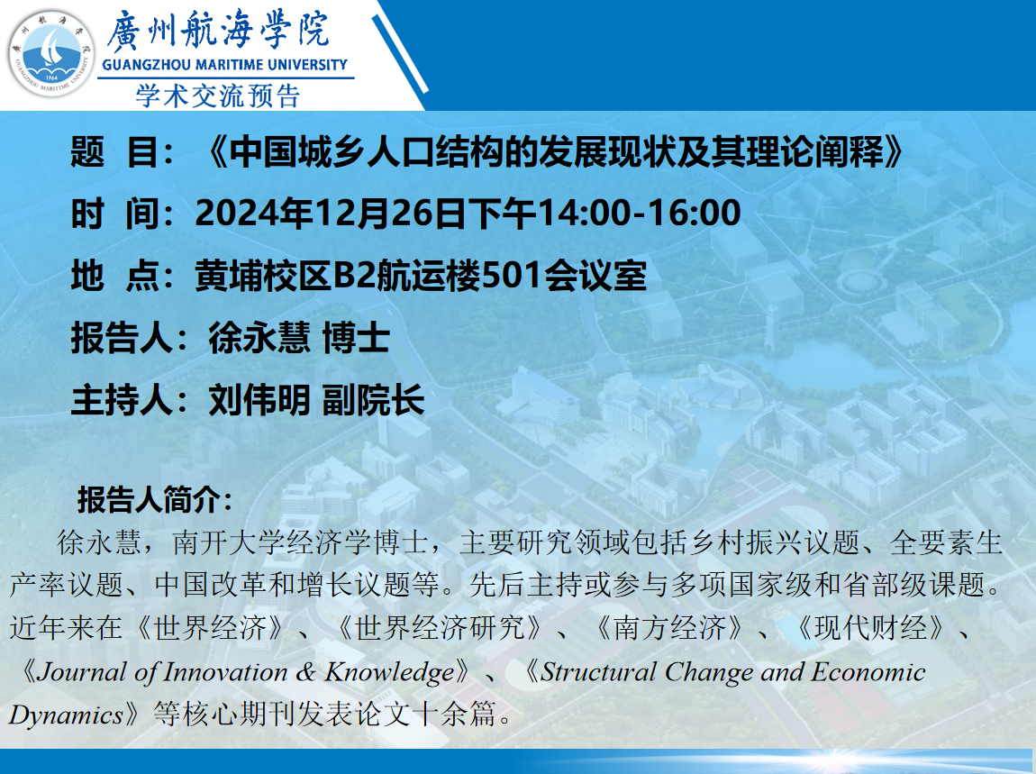 学术交流预告:徐永慧《中国城乡人口结构的发展现状及其理论阐释》