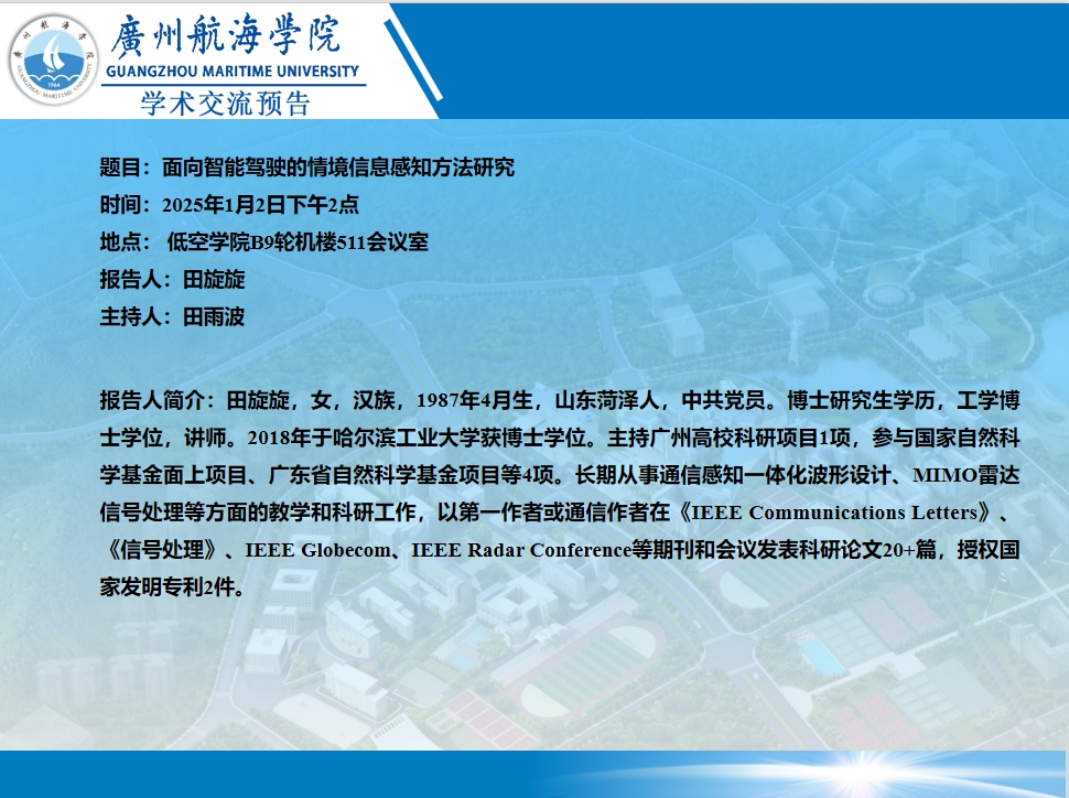“低空翱翔”系列学术预告:田旋旋《面向智能驾驶的情境信息感知方法研究》