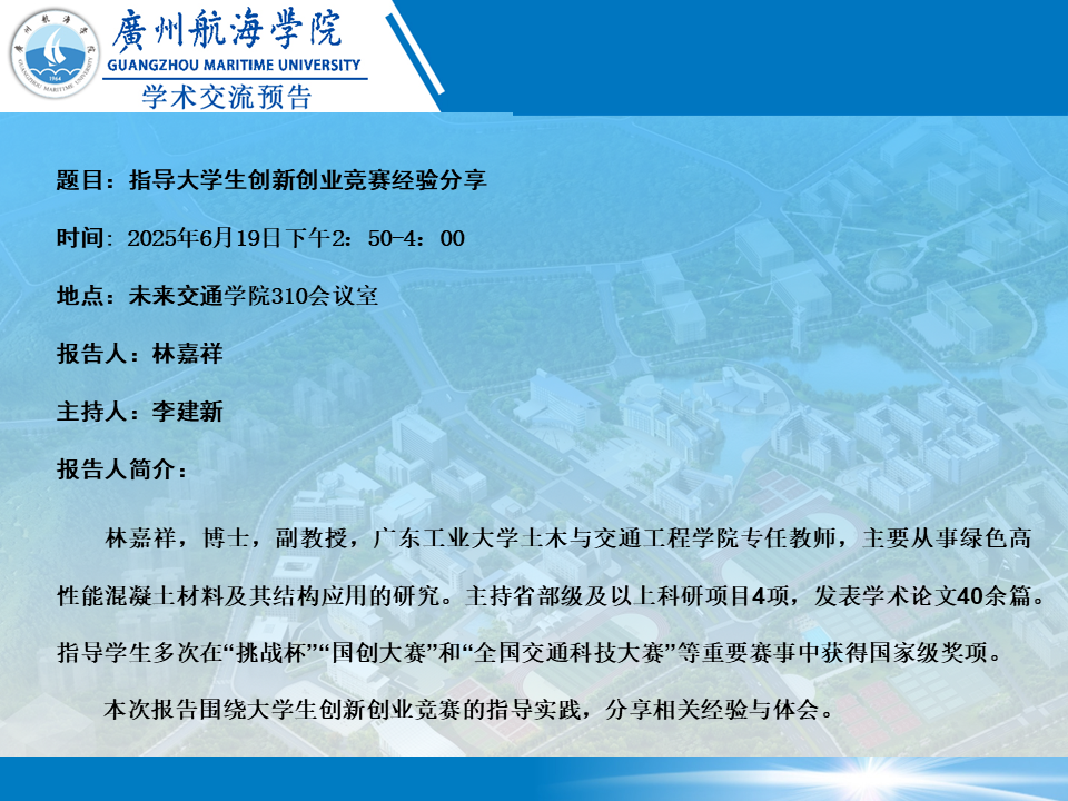 学术讲座预告:林嘉祥《指导大学生创新创业竞赛经验分享》