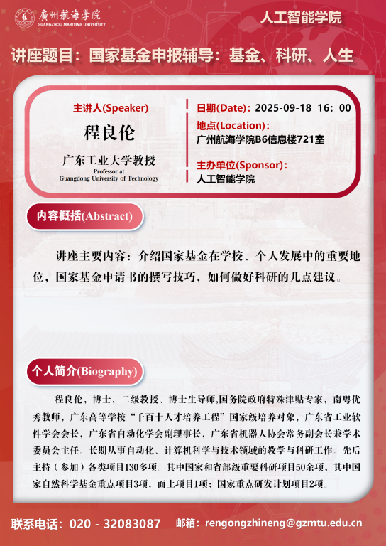 学术讲座预告:程良伦《国家基金申报辅导:基金、科研、人生》