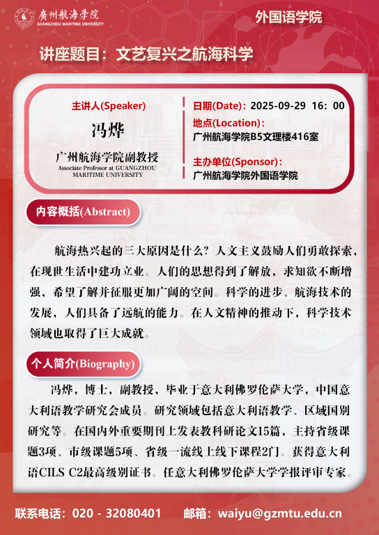 学术讲座预告:冯烨《文艺复兴之航海科学》