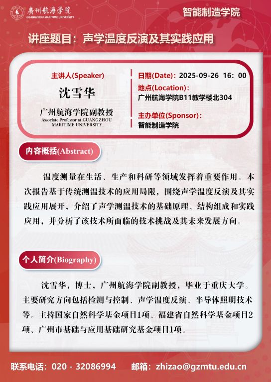 学术讲座预告:沈雪华《声学温度反演及其实践应用》