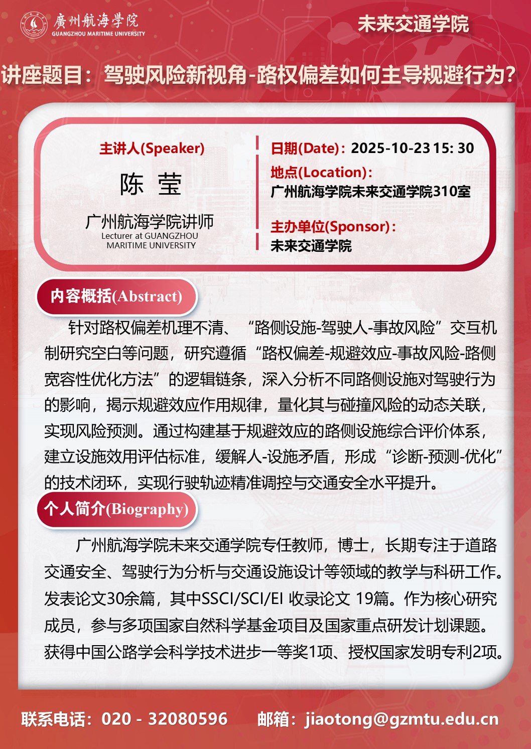学术讲座预告:陈莹《驾驶风险新视角-路权偏差如何主导规避行为》