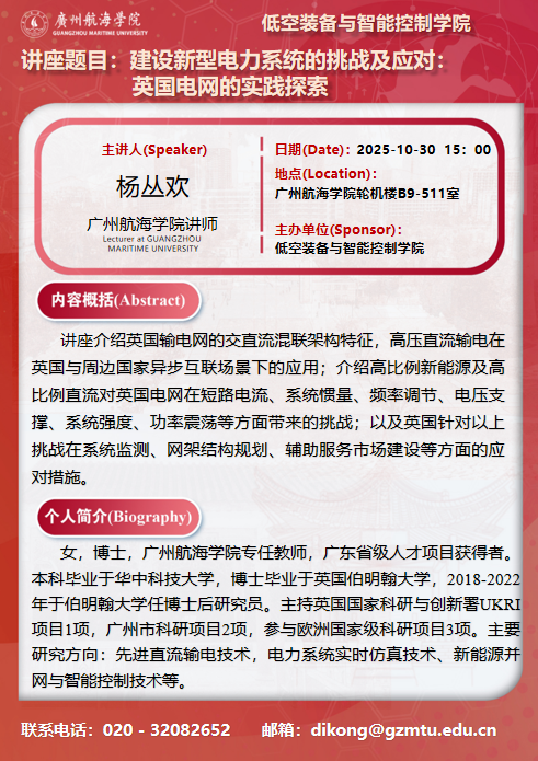 学术讲座预告:杨丛欢《建设新型电力系统的挑战及应对:英国电网的实践探索》
