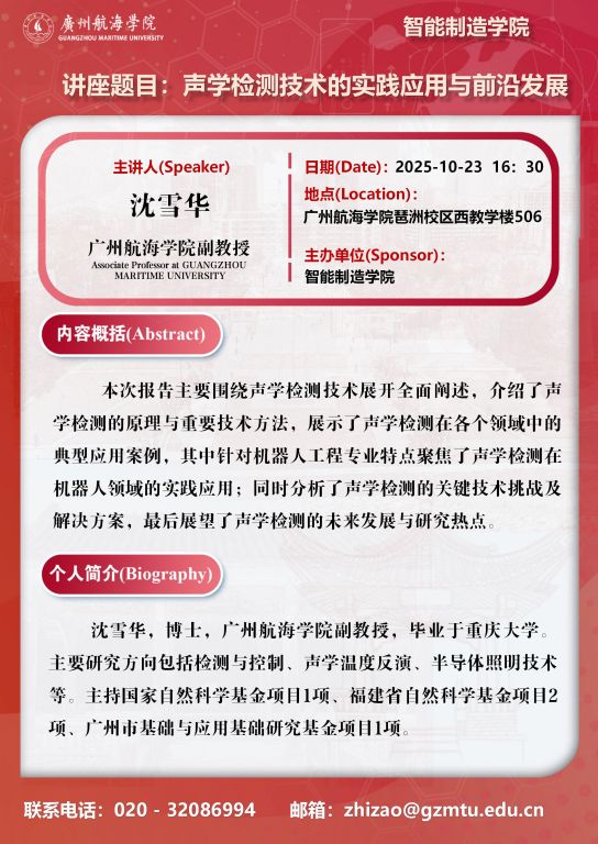 学术讲座预告:沈雪华《声学检测技术的实践应用与前沿发展》
